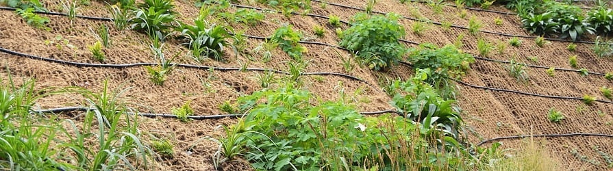 Strmé svahy z vystuženej zeminy, využívajúce geomreže, dosahujú často veľmi strmé sklony, a tak je na ich líci potrebné zabezpečiť protieróznu ochranu proti vyplavovaniu zeminy. Na ňu sa najčastejšie využívajú plošné kokosové rohože.